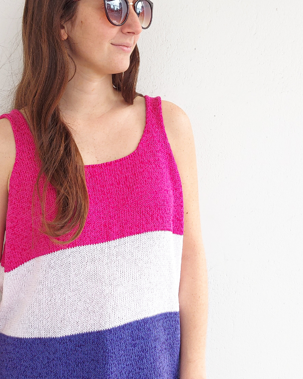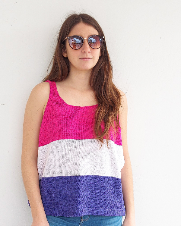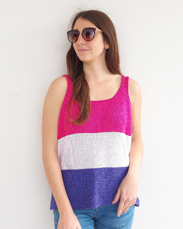 Musculosa de algodón con seda rallada en colores fucsia, rosa y violeta.