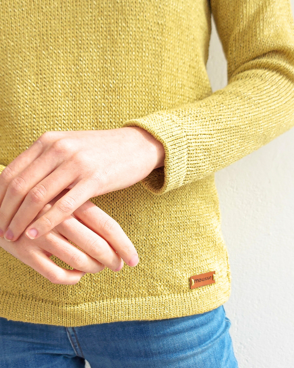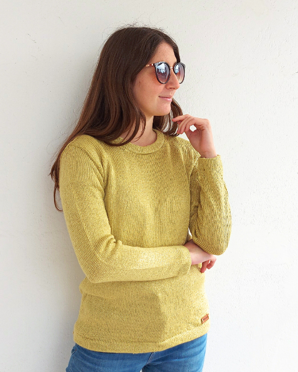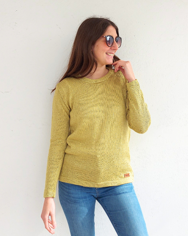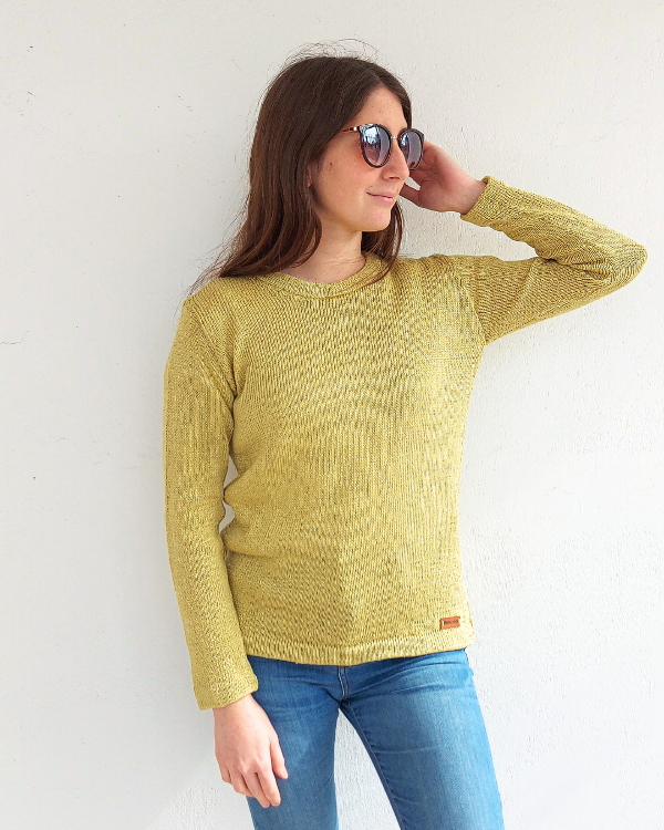 Algodón con seda con escote redondo.