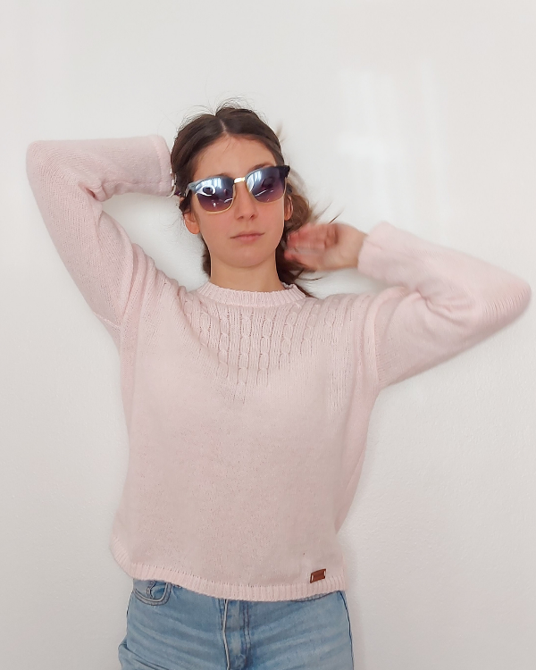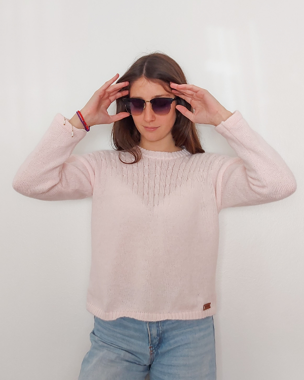 Sweater escote redondo con detalles de ochos en el escote.